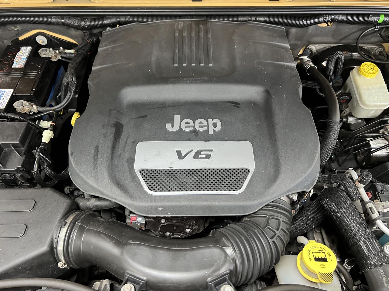 Stand out from the sea of black and silver Jeeps. Finished in the highly sought-after Dune Clear Coat, this 2014 Sahara 2-door is a true head-turner. This color was a limited-run "earth tone" that perfectly captures the Jeep spirit. Finding a clean, 2-door Sahara in this spec—especially one that hasn't been heavily modified—is becoming increasingly difficult.