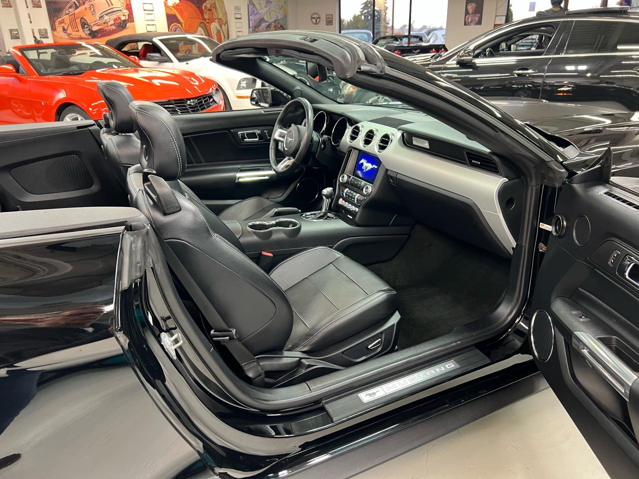 This sharp 2016 Mustang EcoBoost Premium Convertible delivers all the style and performance you expect from a Mustang — with modern efficiency and comfort. Finished in deep black with a matching black power top and leather interior, this car looks as good as it drives.